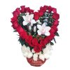 Arreglo floral con rosas rojas, con una hermosa orquídea, chocolates Ferrero Rocher 6 unidades en base corazón.