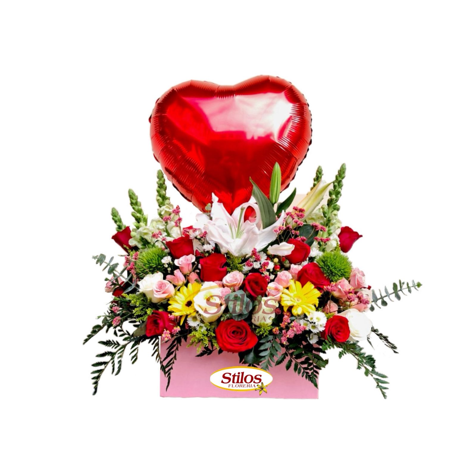 Arreglo floral con 100 rosas rojas flores de verano en base artesanal