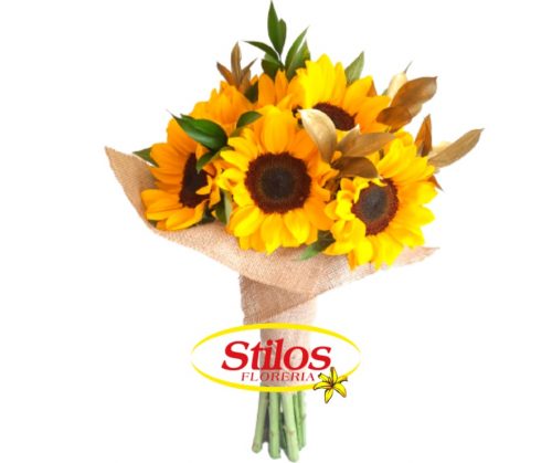 Bouquet con rosas rojas y girasoles, globo y delicioso pastel de naranja, vainilla o chocolate para 10 a 15 personas.