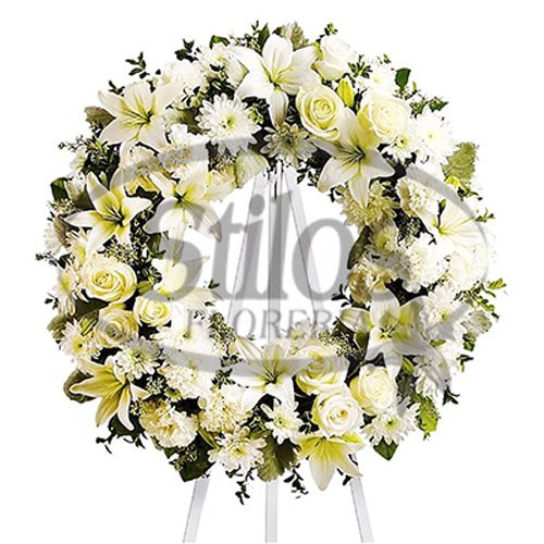 Arreglo floral con rosas blancas, lirios y demás flores de verano.